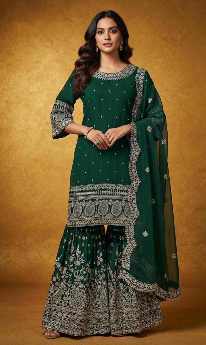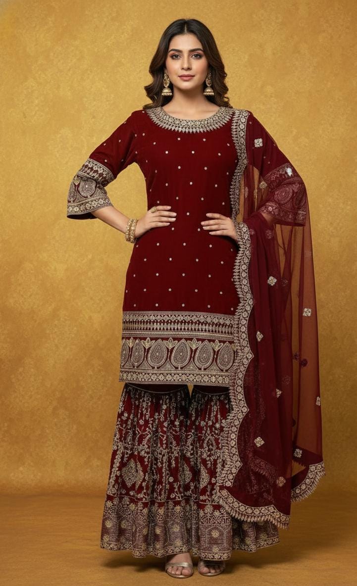 Experience timeless elegance with our beautifully crafted Kurti–Plazzo Set, designed in high-quality Georgette and enhanced with detailed embroidery and real mirror work.
